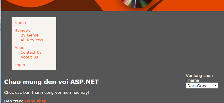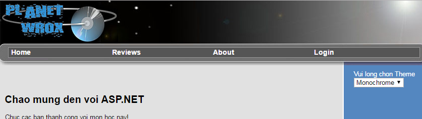 - Lưu tất cả. Chọn một trang nào đó, như Content.aspx và Ctrl + F5 và lưu ý rằng chúng ta chọn theme MonoChrome:
