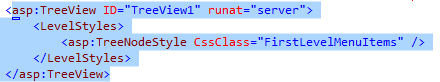 - Thêm phần tử LevelStyles vào giữa cặp thẻ mở và đóng của TreeView như sau:
