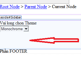 - Mở trang master Frontend.master ở chế độ Design. Đưa con trỏ chuột vào bên phải DropDownList chứa các themes, gõ 3 lần phím Enter để tạo một khoảng trống