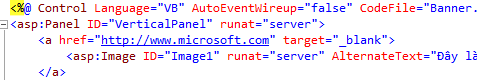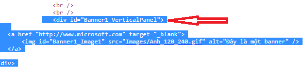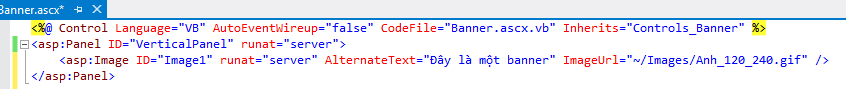 - Mở file Banner.ascx ở chế độ Source và copy toàn bộ đoạn <asp: Panel> và Paste vào ngay dưới, thiết lập lại ID của Panel và ImageUrl của Image như sau: