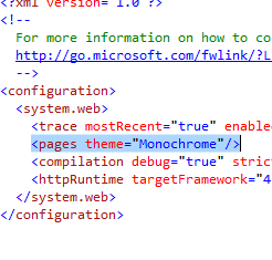- Mở trang master Frontend.master ở chế độ Resource và xoá chỉ định @ Register ở đầu trang. Mở file Web.config, tìm đến phần tử <pages /> như sau: