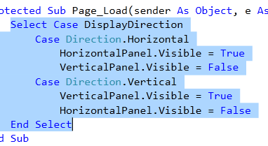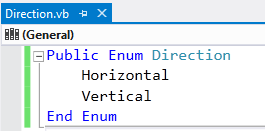 Public Enum Direction Horizontal = 0 Vertical = 1 End Enum