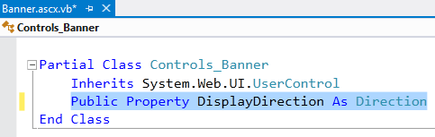 - Mở file VB của Banner.ascx (Banner.ascx.vb), thêm một Property cho user control bằng cách gõ đoạn mã sau: