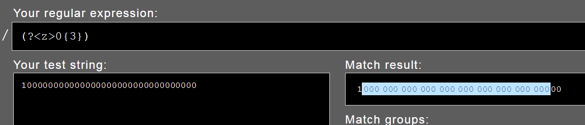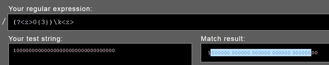 Nếu muốn so khớp vớp 000000 (6 số 0) thì chúng ta có thể dùng mẫu (?<z>0{3})\k<z>