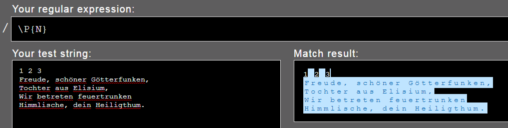 Gõ \p{N} để so khớp các kí tự là số, kết quả: