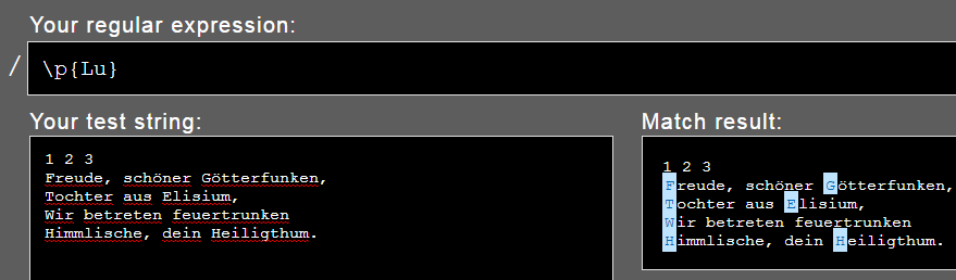 Gõ \p{Lu} để so khớp các kí tự viết hoa: