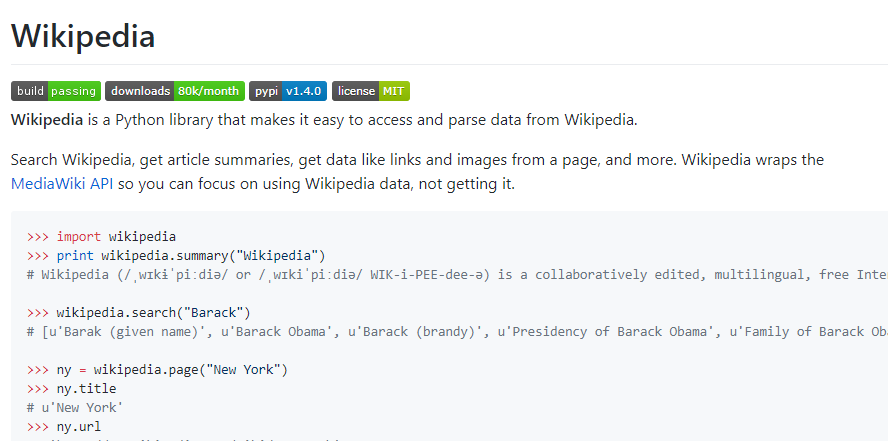 Trên đây chỉ là ví dụ về cách dùng thư viện Wikipedia. Có thể tìm hiểu nhiều chức năng thú vị khác từ thư viện này tại https://github.com/goldsmith/Wikipedia